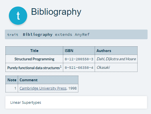 Scala 2.12.7 adds support for markdown tables in Scaladoc comments.