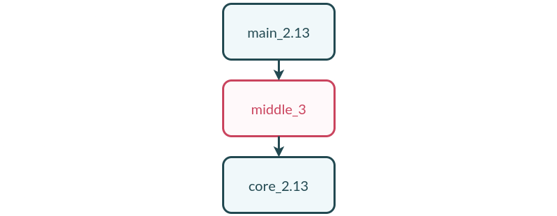 Here the classpath of the main application contains the Scala 3 compiled classes of the middle module which itself depends on the Scala 2.13 classes of the core module.